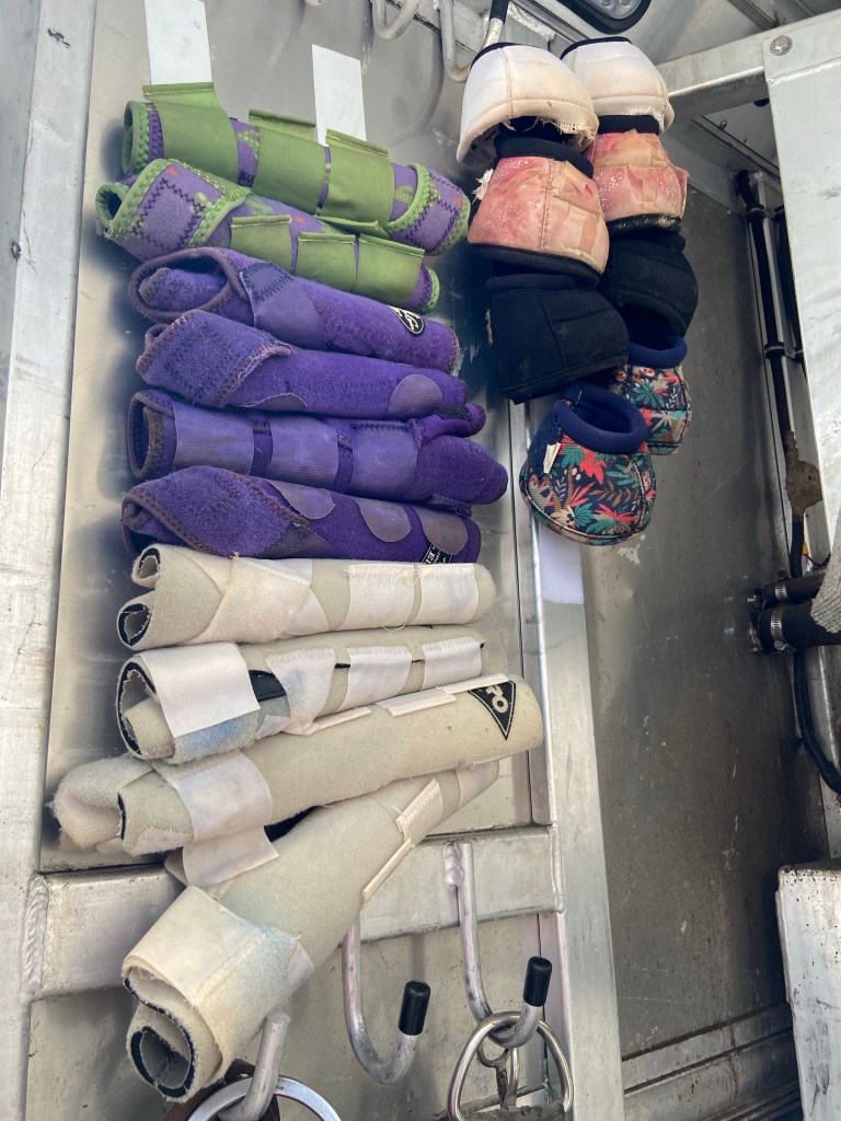 You also need to remember brushes, leggings, hoof picks, fly spray, and all the tack.