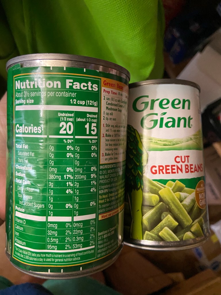 If you fry 3 pieces of bacon – or even six for an entire can of green beans, you will have your protein content.