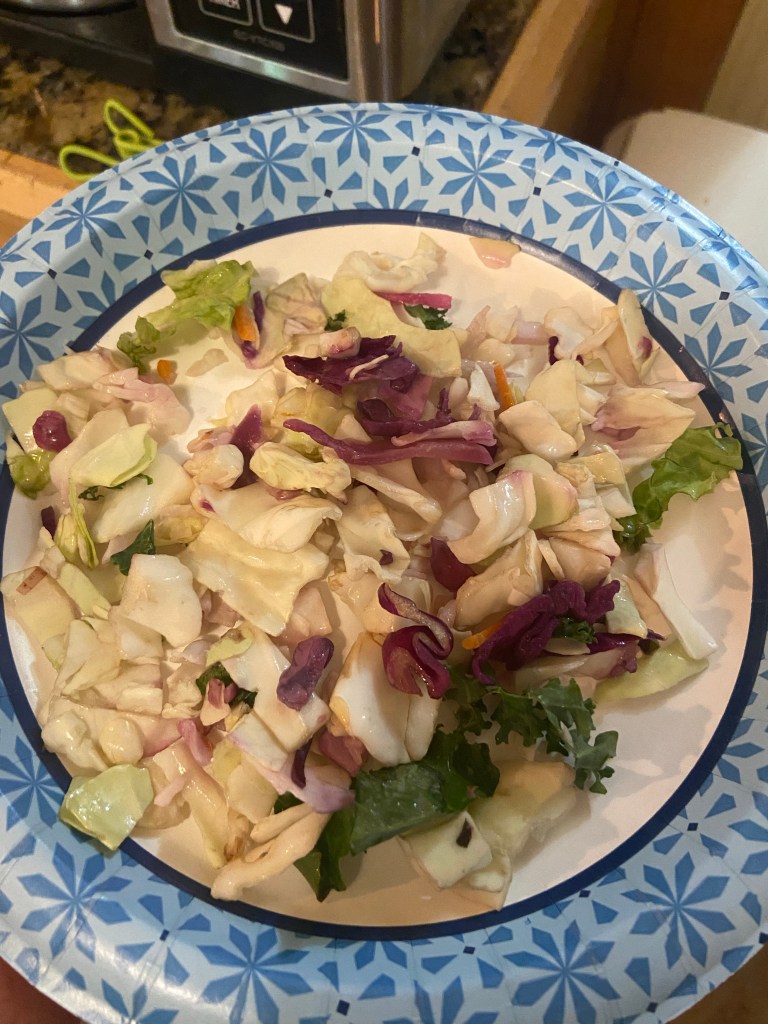 Another easy low carb meal is chicken salad. I don’t use all of my egg yolks because that’s where the fat is. Again, I like low carb, high protein – not high fat. I want to control calorie count, which is a little different than traditional keto, which pushes high fat.