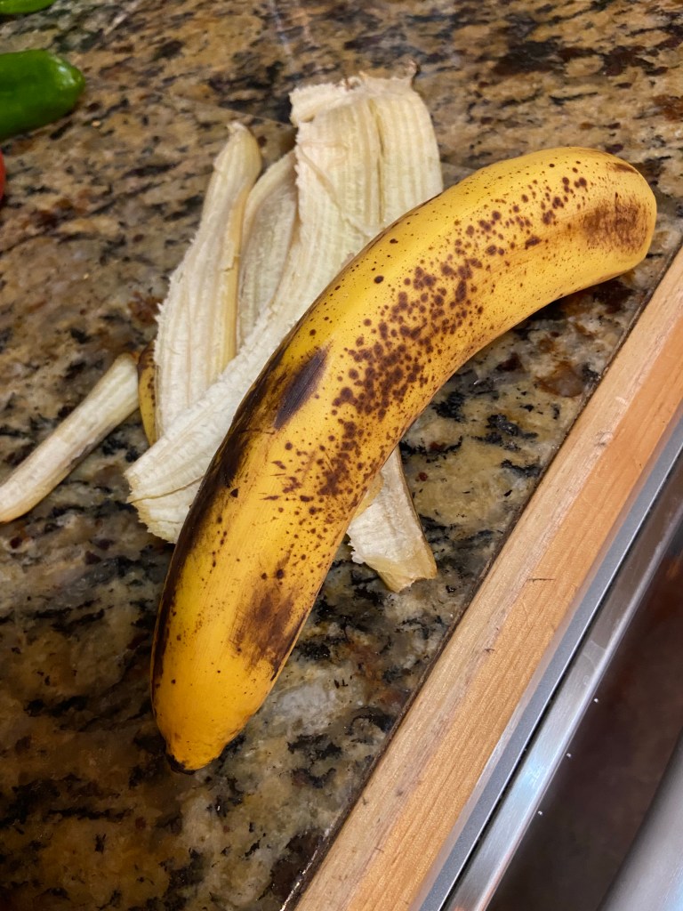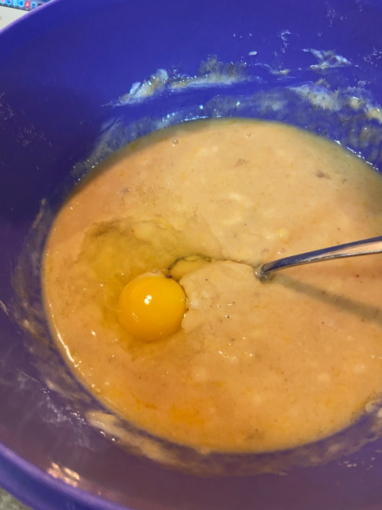 That’s it. Your batter will be lumpy, but don’t over mix it. You can leave some of the banana in chunks if you like.