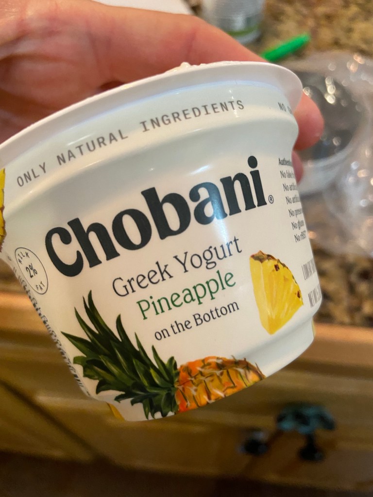 I mixed in a cup of pineapple Greek yogurt. I love the acidity of pineapple. It’s not a lot, just an occasional brightness in a bite.