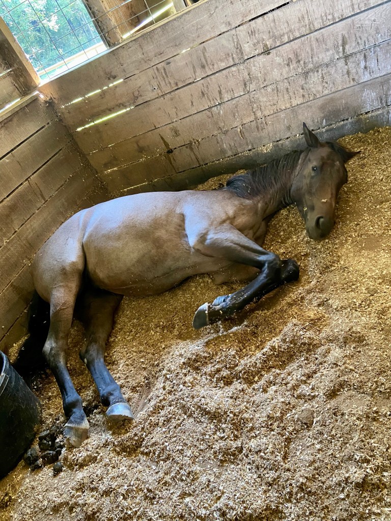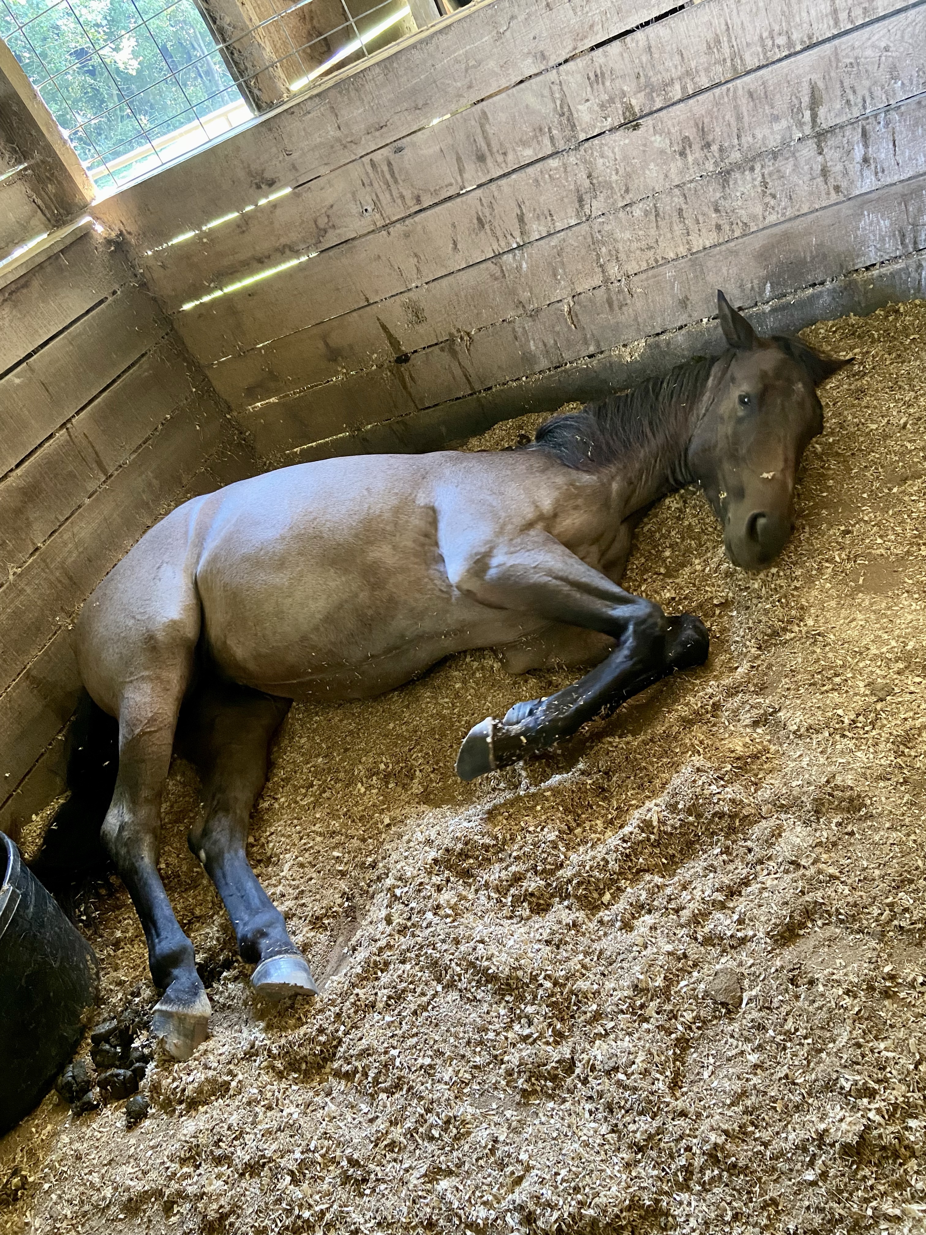 When horses are in pain, they are afraid to lie down. This goes back to the fact that they are prey animals. If they lie down and a predator approaches, they may not be able to get back up quickly.