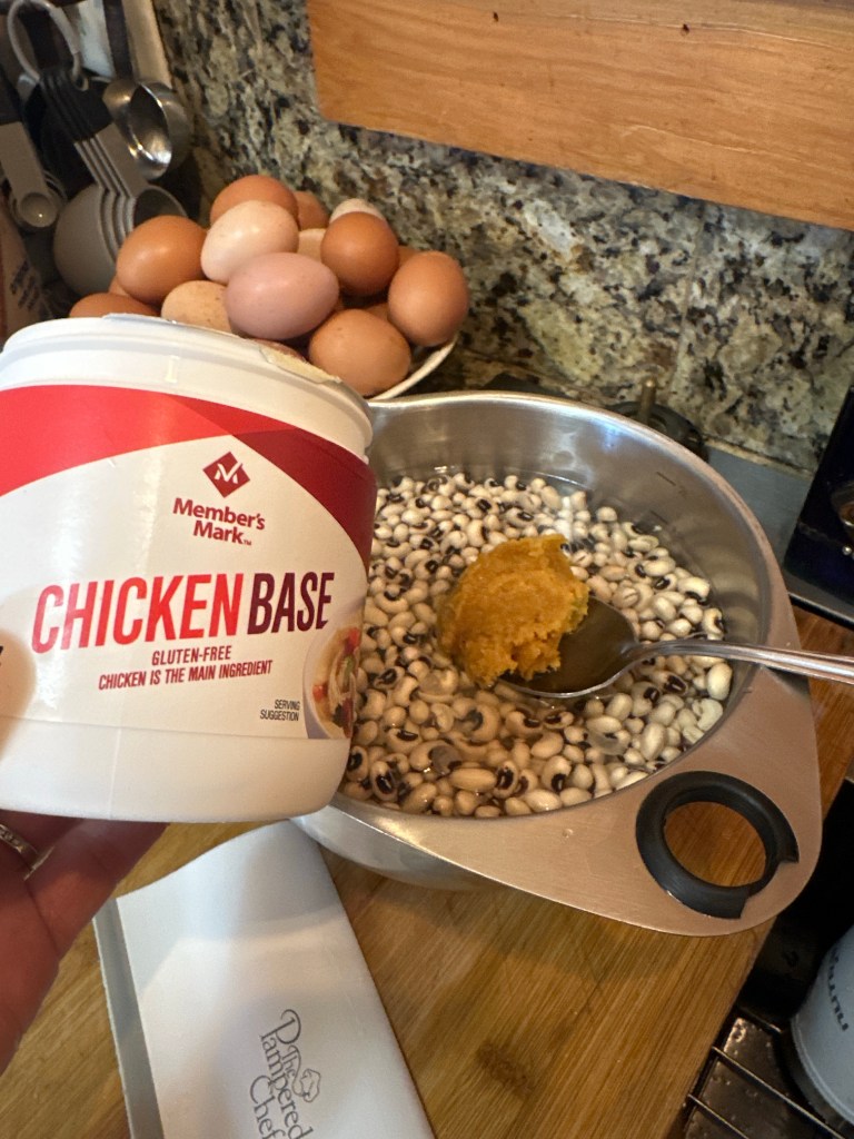 I will add water after this. If you don’t have chicken base, then simply use chicken broth or stock to add liquid once they go into the pot.