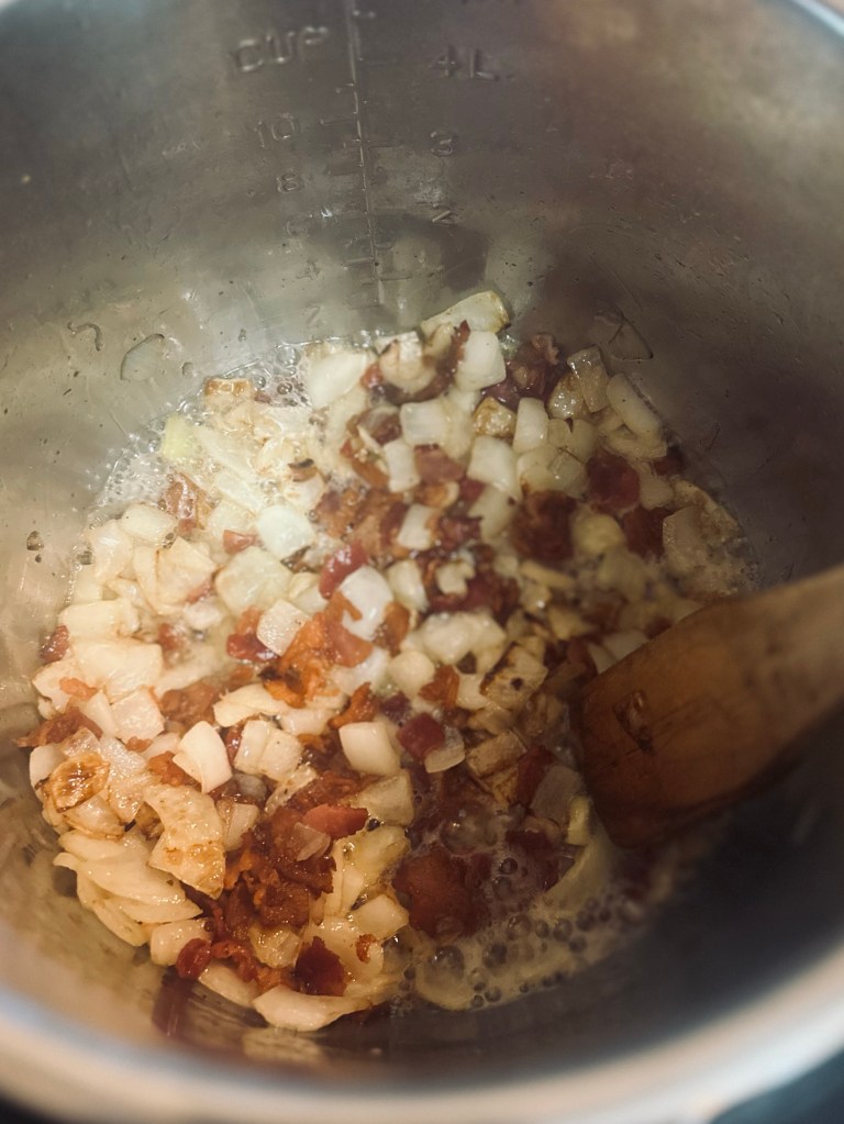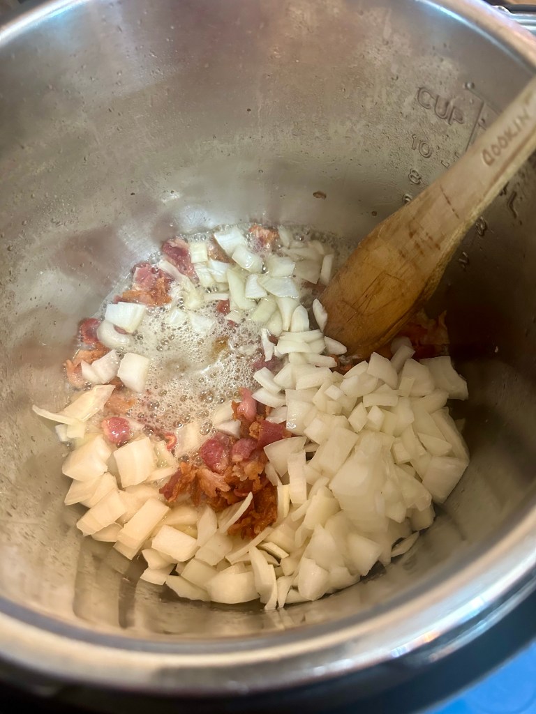 I am using the sauté setting on my Instant Pot. You can do this on the stovetop or in a crockpot after you prep in a saucepan.