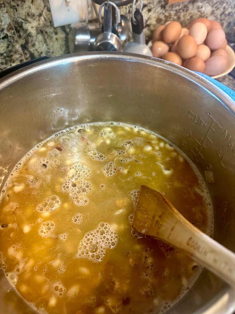 After adding in the sausage and a good heaping tablespoon of minced garlic, I run it through a 15 minute soup cycle. I added a little more water just because I like mine more soup consistency.